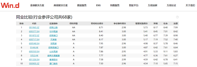 近日,國內(nèi)權(quán)威ESG評級機構(gòu)萬得(Wind)正式公布了天津港(600717.SH)2025年最新年度ESG評級數(shù)據(jù),天津港股份公司首次獲得Wind ESG AA級評級,ESG綜合評分8.17分,位列68家交通基礎(chǔ)設(shè)施行業(yè)上市公司第4位。